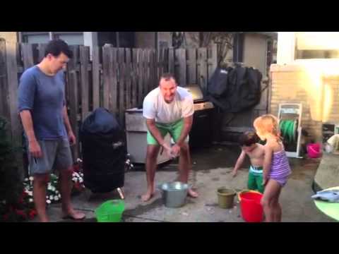 Good sports and for a good cause, the ALS ice bucket challenge has been completed by the family. Now we'll see if Nana does it…